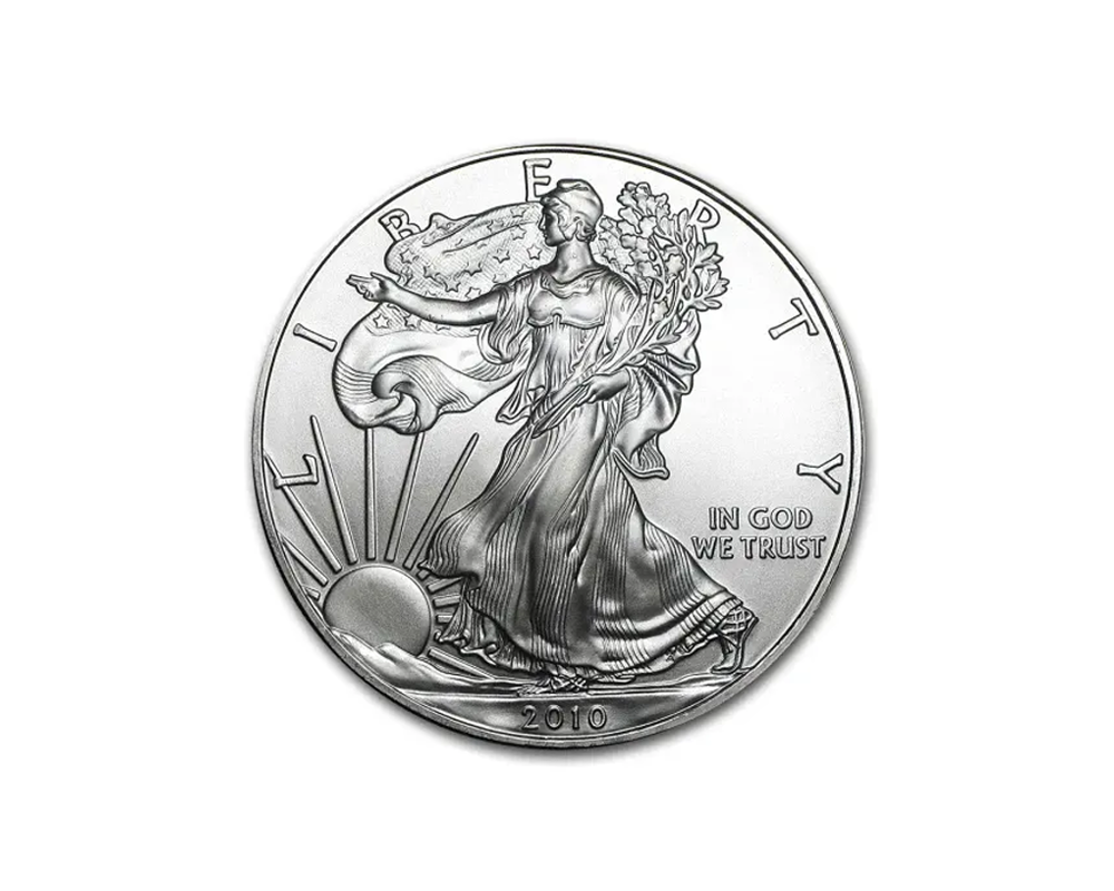 The 2010 American Eagle (BU) 1 oz of .999 fine silver coin is a pristine, Brilliant Uncirculated piece from this iconic series. Features Adolph A. Weinman’s “Walking Liberty” design on the obverse and John Mercanti’s heraldic eagle on the reverse.