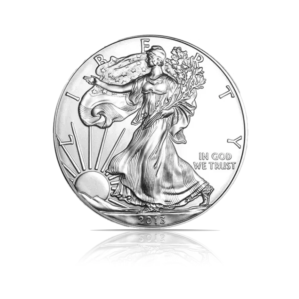 The 2013 American Eagle (BU) 1 oz of .999 fine silver coin is a pristine, Brilliant Uncirculated piece from this iconic series. Features Adolph A. Weinman’s “Walking Liberty” design on the obverse and John Mercanti’s heraldic eagle on the reverse.