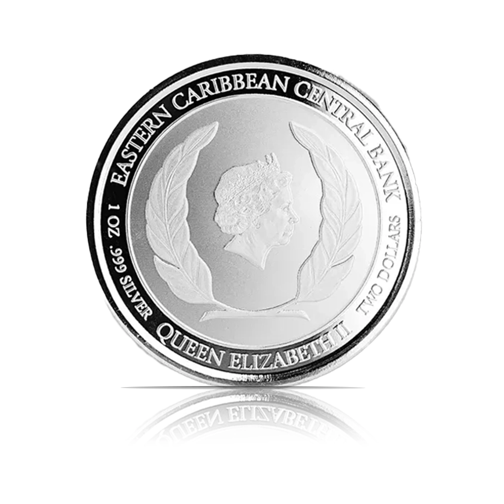Minted in silver by the Scottsdale Mint for the EC8 series, the obverse features the effigy of Queen Elizabeth II. The reverse highlights Dominica’s “Nature Isle” branding with a lush rainforest and waterfall design with .999 fine silver purity. Limited mintage of 25,000 coins.