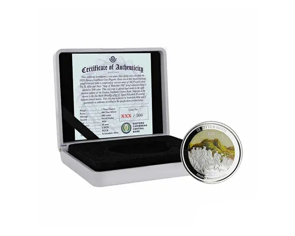 2020 – Colored EC8 St Kitts & Nevis Brimstone Hill 1 oz Silver Proof Coin