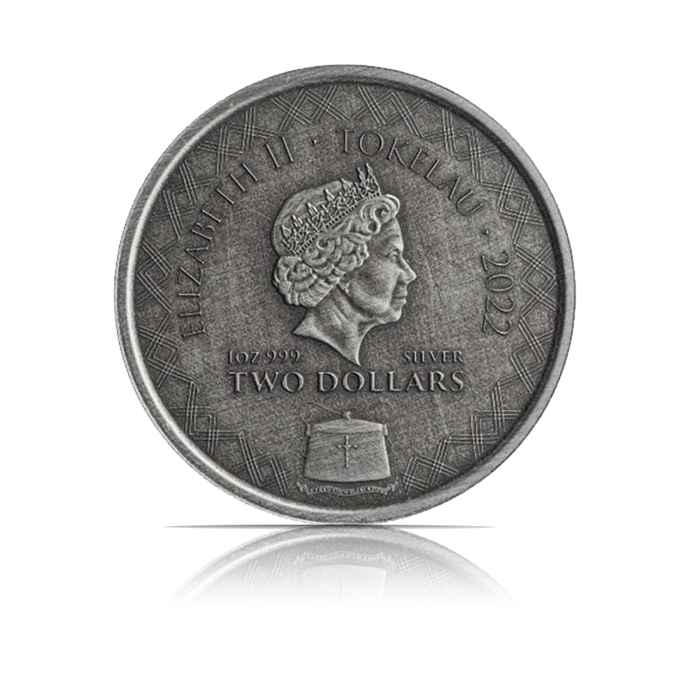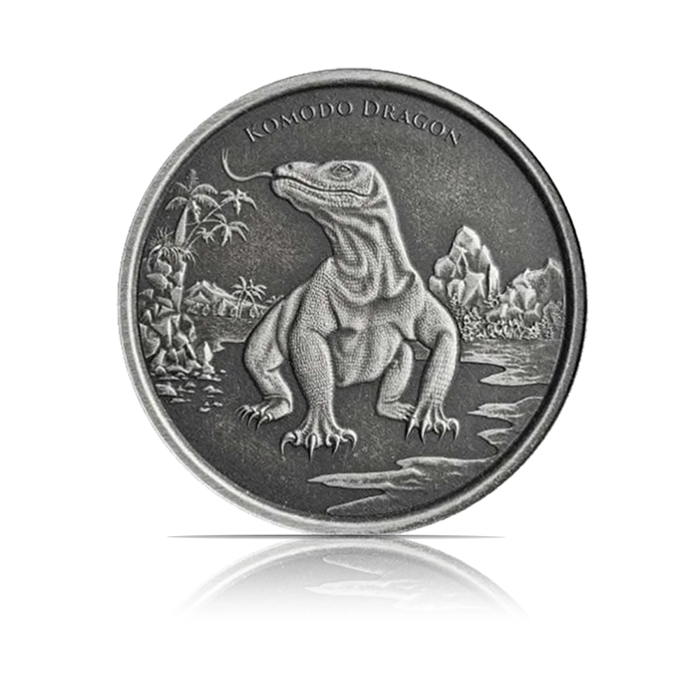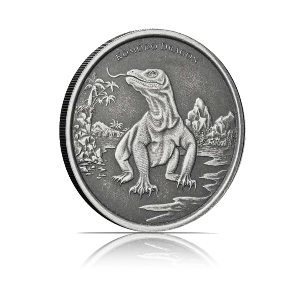 This 2022 coin from the Scottsdale Mint contains 1 oz of .999 fine silver. It features a hyper-detailed Komodo Dragon with a hand-brushed Antiqued finish that highlights the lizard’s scales, limited to a mintage of 3,000.
