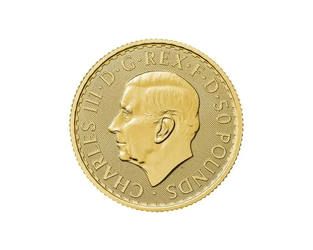 Mark a new era with this 2023 Royal Mint King Charles III Britannia 1/2 oz .9999 pure gold coin. A historic piece for collectors.