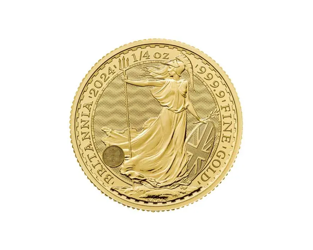 A timeless design from the Royal Mint, this 2024 British Britannia 1/4 oz .9999 pure gold coin is a beautiful and compact investment.