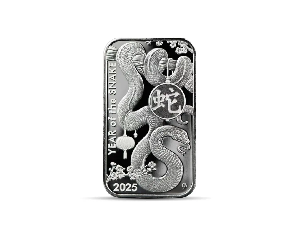 This 1 oz .999 pure silver bar from the Lunar Series for the Year of the Snake is a popular investment piece from Asahi Refining.