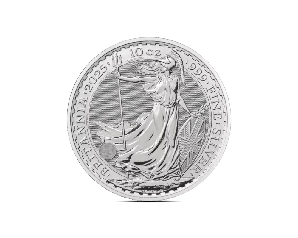 A substantial and beautiful investment. This 2025 Royal Mint Britannia 10 oz .999 pure silver coin is a cornerstone piece for any stacker.