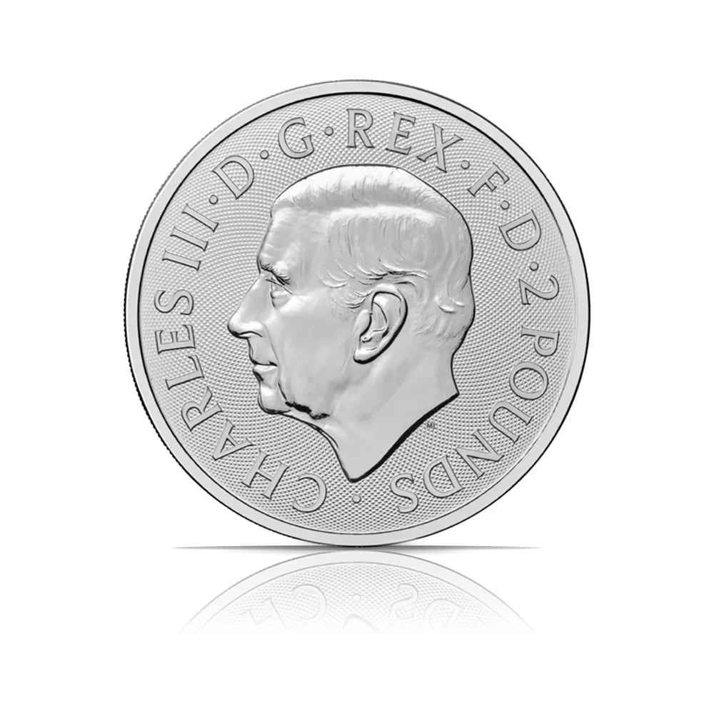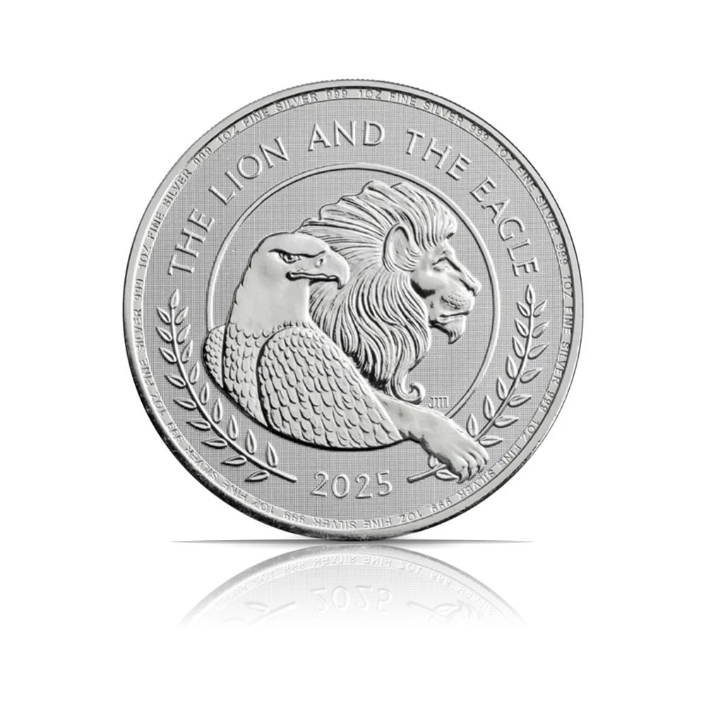 This 2025 coin from The Royal Mint is a 1 oz coin of .9999 fine silver. It features a collaborative design with a British Lion and an American Eagle on the reverse and the official effigy of King Charles III on the obverse. Issued in Brilliant Uncirculated (BU) condition, the coin has a face value of £2.