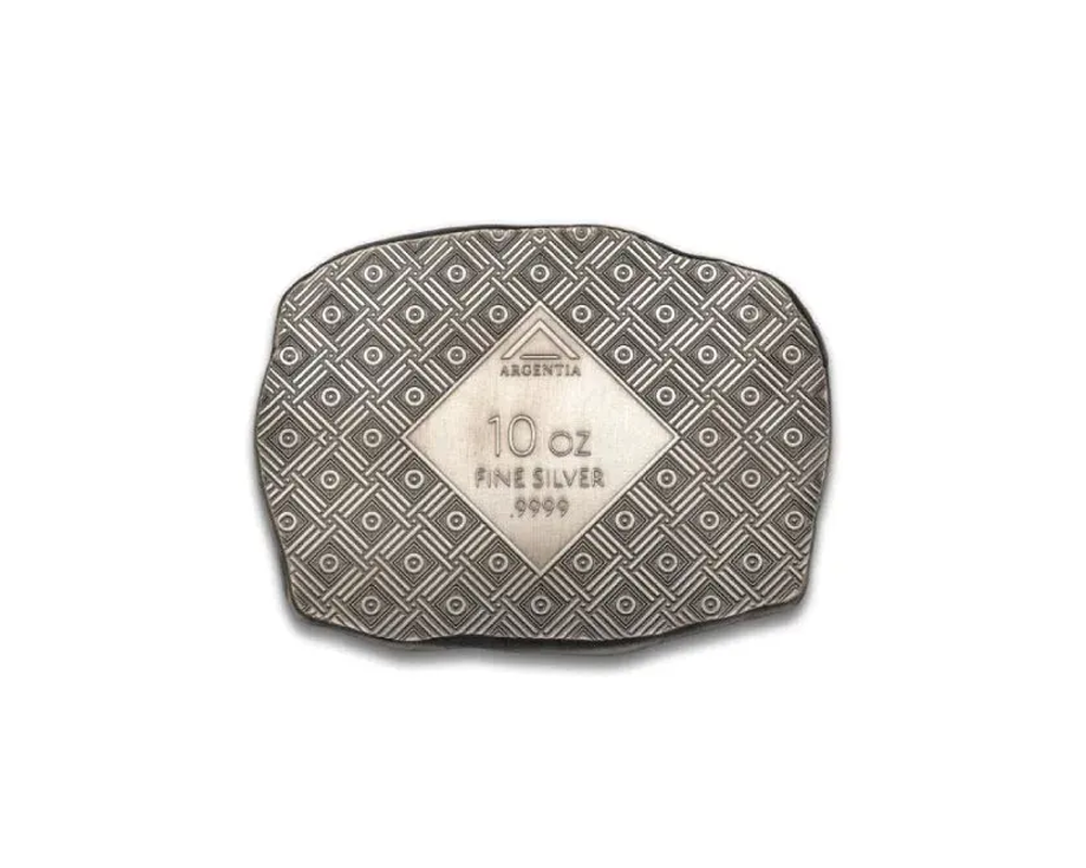 A mythical design from Argentia Mint. This 10 oz .9999 fine silver bar is in ultra-high relief with a beautiful antique patina.