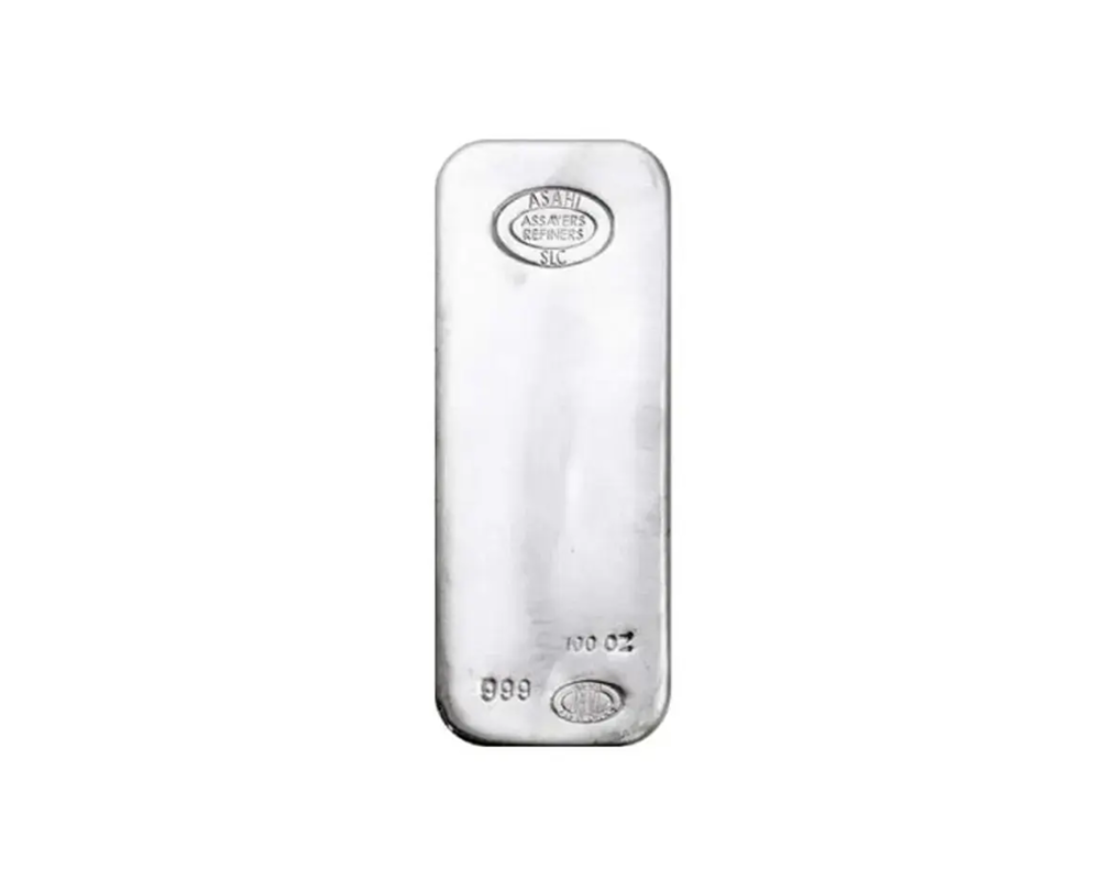 A large, liquid investment from Asahi Refining. This set includes five standard 100 oz .999 pure silver bars.