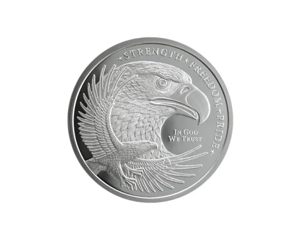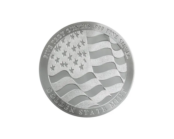 Minted by the Golden State Mint in the USA, this Random Year round weighs 5 oz and is struck in .999 fine silver. It is a key large-format piece in the Eagle series.