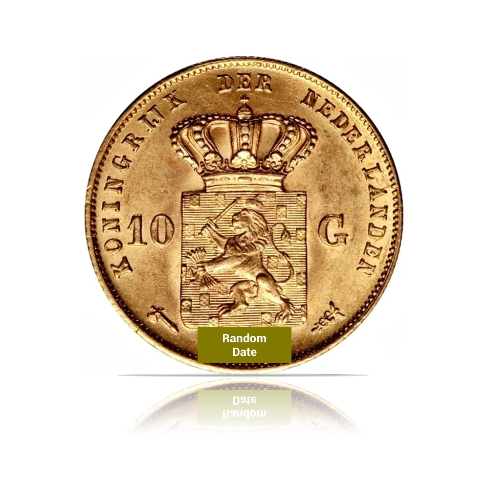 Minted in 1947, this 0.1947 oz gold coin from the Netherlands features the portrait of Queen Wilhelmina on the obverse. The reverse displays the crowned coat of arms of the Netherlands. It has an original mintage of approximately 1,000,000 pieces.