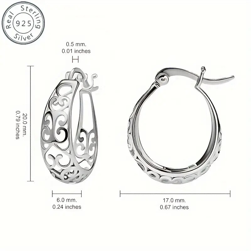 Elevate your style with a beautiful pair of Bohemian-inspired hoop earrings, expertly crafted from genuine 925 sterling silver. Look at this intricate detailing and a timeless hoop design, these earrings effortlessly blend elegance and free-spirited charm. Perfect for everyday wear or special occasions, their lightweight construction ensures comfort, while the high-quality silver offers lasting shine and durability. Add a touch of boho chic to any outfit with these versatile and eye-catching earrings.