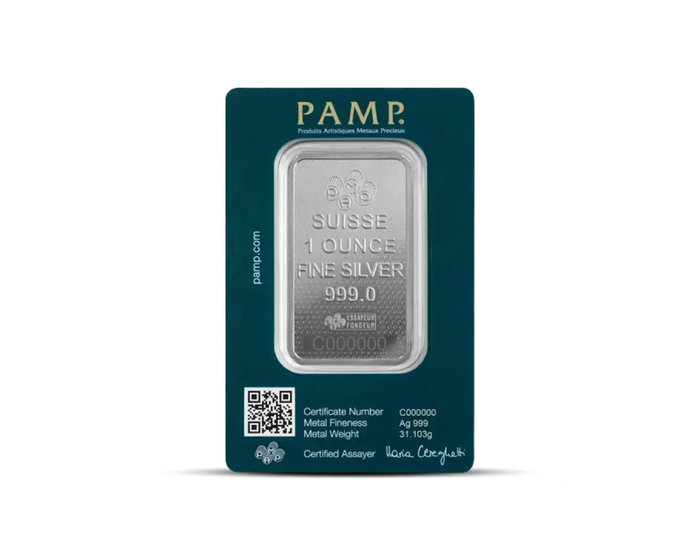 This PAMP 1 oz of .999 fine silver bar, originating from Switzerland, commemorates the 45th Anniversary of the iconic Lady Fortuna series. It comes in a sealed assay card, featuring the Lady Fortuna design in the obverse and the reverse displays the PAMP logo, purity, weight, and a unique serial number.