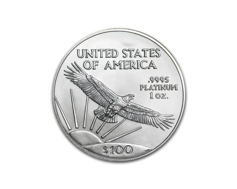 This random year dated American Eagle 1 oz platinum coin is .9995 fine platinum. It features the Statue of Liberty on the obverse and an American eagle on the reverse. It is produced by the United States Mint.