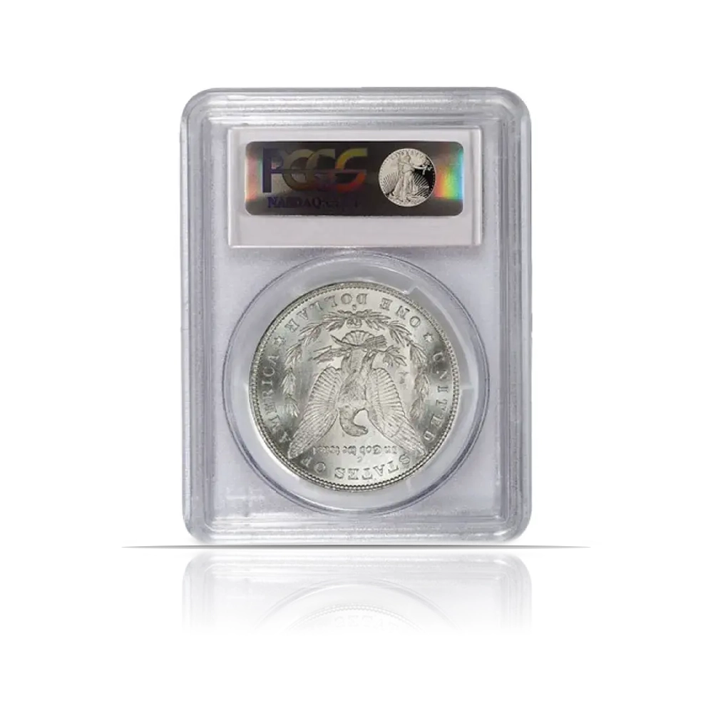 This random year dated Pre-1921 Morgan One Dollar .900 fine silver coin, graded MS65 by PCGS, represents a classic era of American coinage. It features George T. Morgan’s iconic Liberty head on the obverse and an eagle with outstretched wings on the reverse.