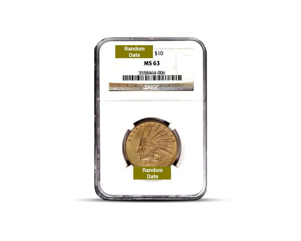 This random year dated Pre-1933 $10 Indian Eagle .900 fine gold coin, graded MS63 by NGC or PCGS, is a stunning and historically significant piece. Designed by the renowned sculptor Augustus Saint-Gaudens, it features a unique Native American profile of Liberty on the obverse and a majestic eagle on the reverse.