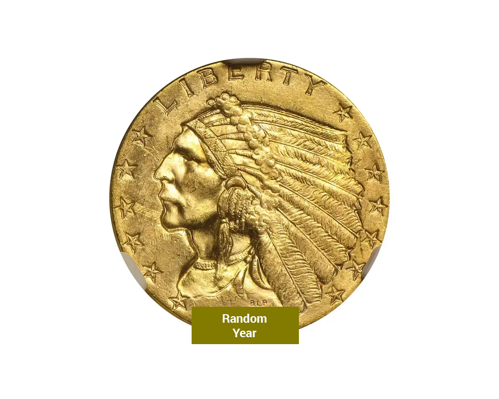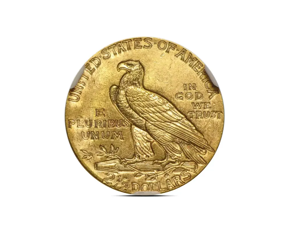 This U.S. Mint coin is a $2.50 Indian Quarter Eagle from the pre-1933 era. It contains .12094 oz of .900 fine gold and features a Native American head on the obverse and an eagle on the reverse in an incuse (recessed) design. The coin is in About Uncirculated (AU) condition.