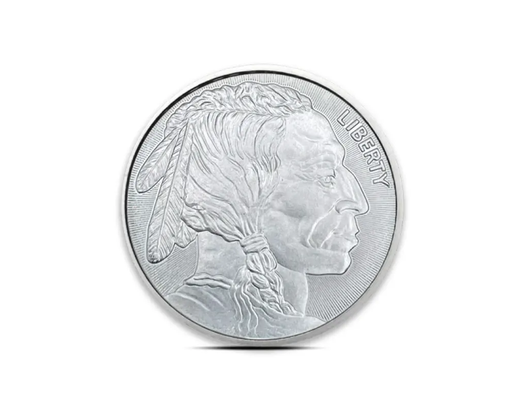 This 1 oz .999 fine silver round by Elemetal Mint, minted in the United States, features the classic Buffalo design, with a Native American profile on the obverse and an American bison on the reverse.