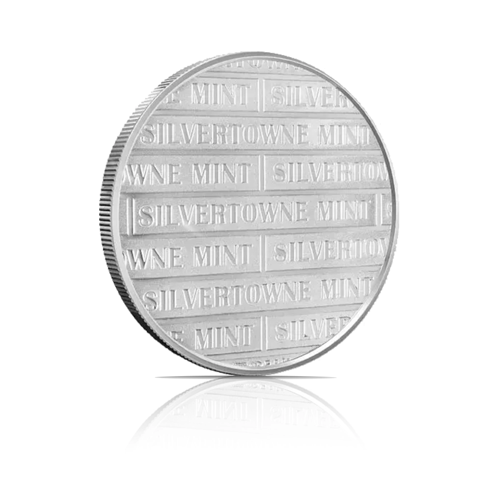 Struck in 1 oz silver, this round features a close-up, detailed portrait of a bald eagle’s head on the obverse. The reverse showcases a soaring eagle with wings spread wide, accompanied by the weight and .999 fine silver purity.