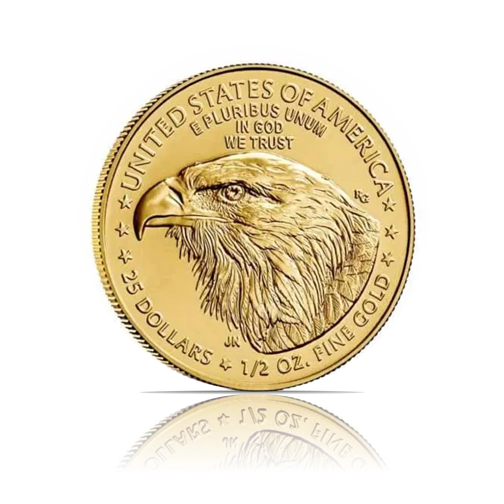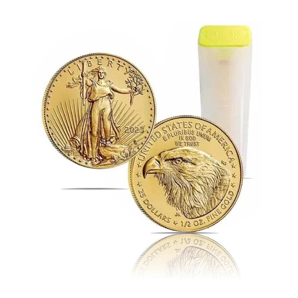 The 2023 American Eagle (BU) 1/2 oz of fine gold coin is a pristine, Brilliant Uncirculated piece from this iconic series. Features Adolph A. Weinman’s “Walking Liberty” design on the obverse and John Mercanti’s heraldic eagle on the reverse.