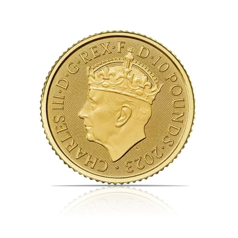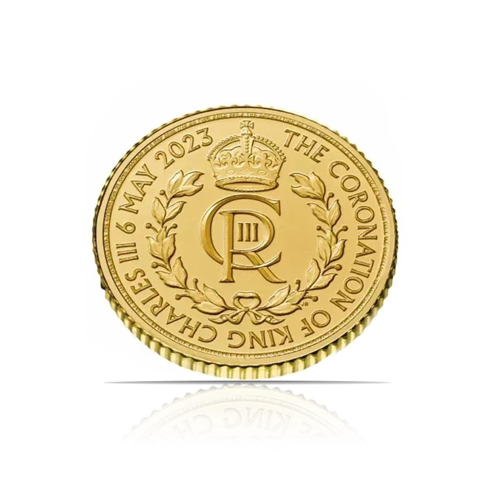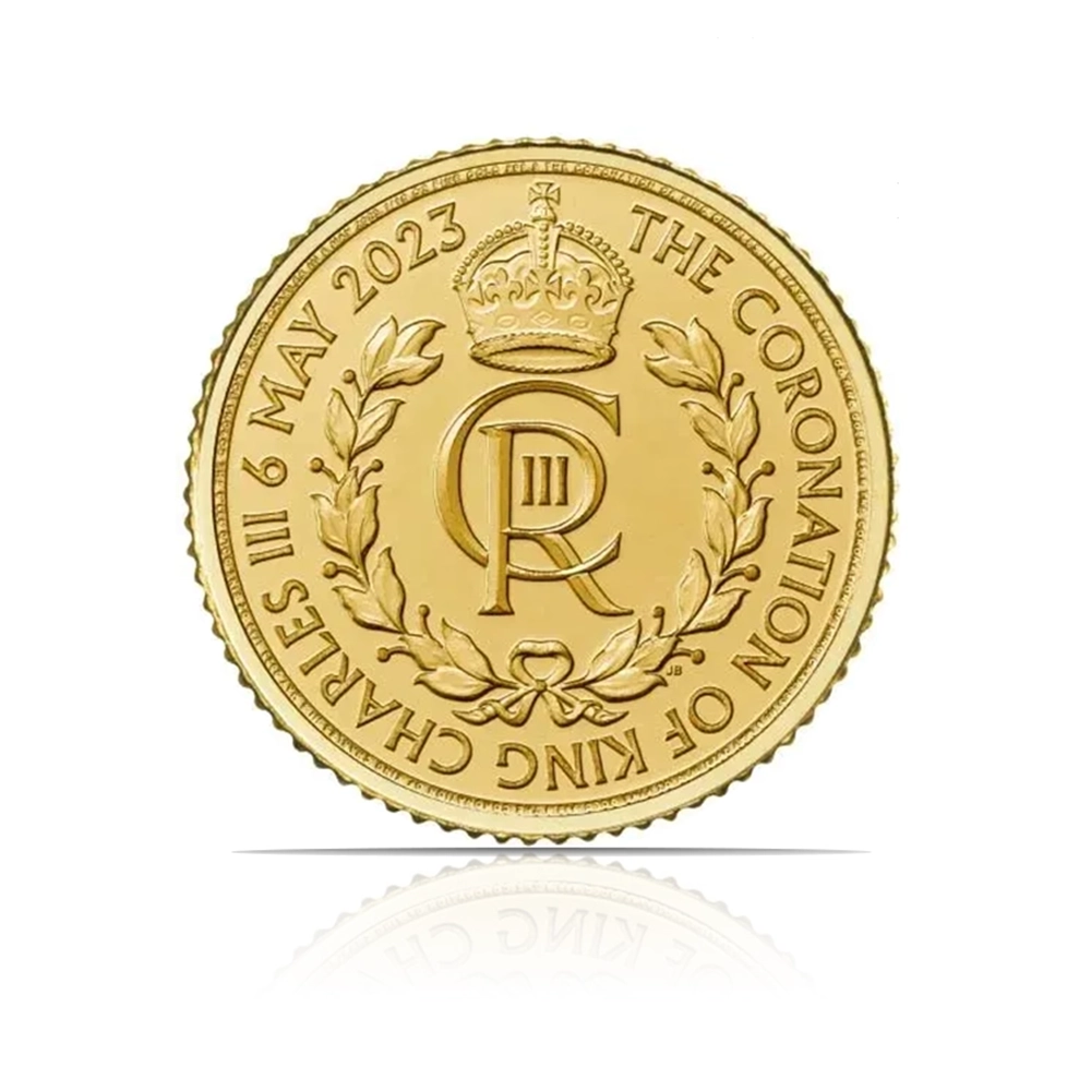 Celebrate a historic moment with this 2023 Royal Mint King Coronation Crown 1/10 oz .9999 pure gold coin. A beautiful commemorative piece.