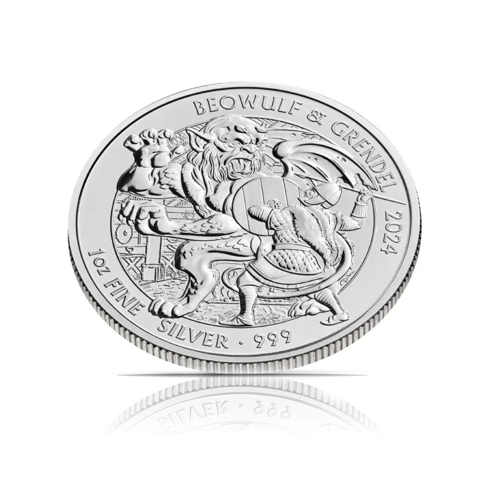A fierce and mythical set! This set of 10 Royal Mint 2024 Beowulf & Grendel 1 oz .999 pure silver coins is a unique addition to any collection.