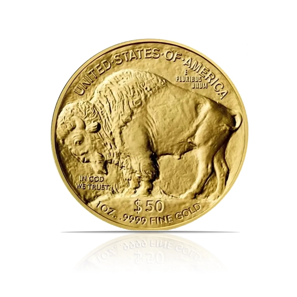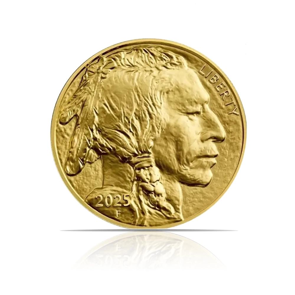 This is a 2025 American Buffalo 1 oz of .9999 fine gold coin in Brilliant Uncirculated (BU) condition. It features James Earle Fraser’s Native American and American Bison designs. It is produced by the United States Mint.