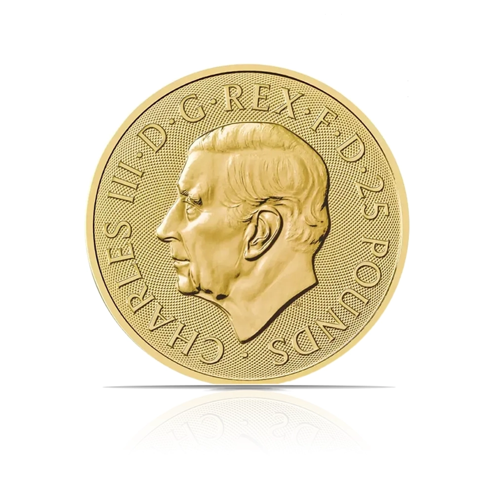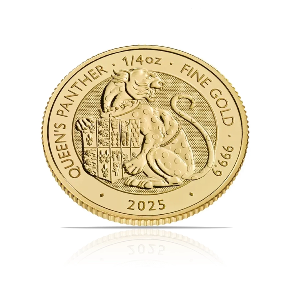 Sleek, powerful, and valuable. The Royal Mint 2025 Tudor Beasts Panther 1/4 oz .9999 pure gold coin is a great way to add fractional gold to your stack.