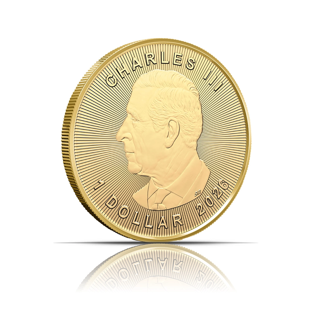 The 2026 gold bullion coin from the Royal Canadian Mint. Struck in 1/20 troy oz of .9999 pure gold (24-karat), this Brilliant Uncirculated (BU) coin features the iconic maple leaf and the effigy of King Charles III.