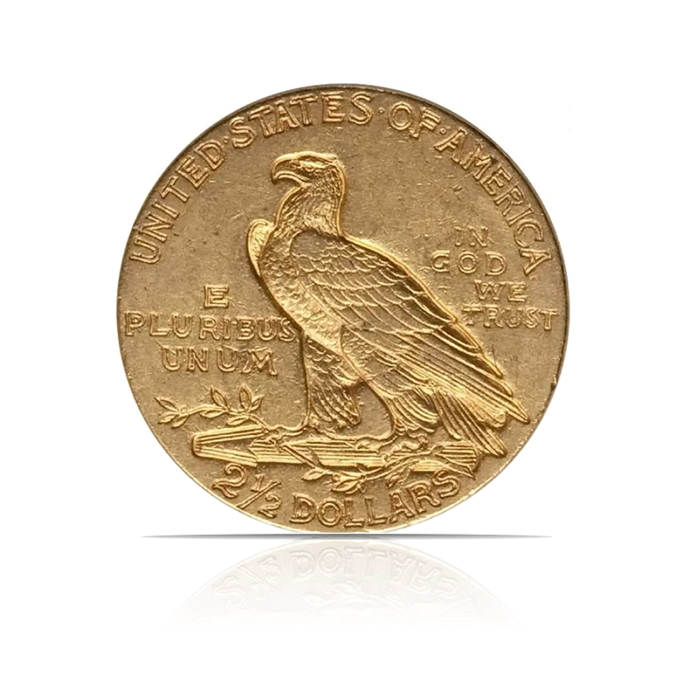 The $2.50 Indian Quarter Eagle coins were minted by the United States Mint at its facilities in Philadelphia and Denver. Pieces struck at the Philadelphia Mint do not have a mint mark, while those from the Denver Mint have a “D” mint mark on the reverse.
