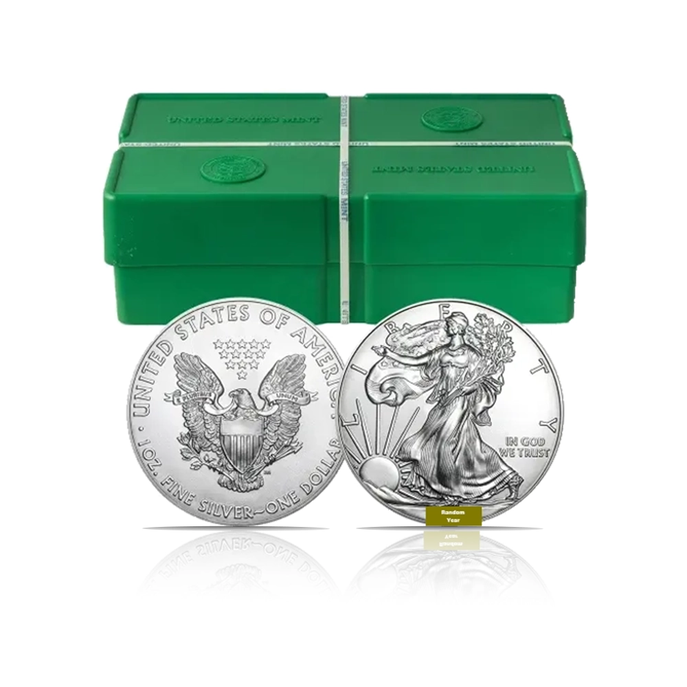 Random dated, this American Eagle (BU) 1 oz of .999 fine silver coin is a pristine, Brilliant Uncirculated piece from this iconic series. Features Adolph A. Weinman’s “Walking Liberty” design on the obverse and John Mercanti’s heraldic eagle on the reverse.