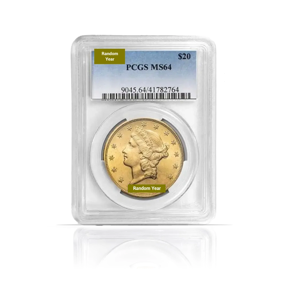 Random Year – $20 Liberty Double Eagle Gold Coin (MS64, NGC or PCGS)