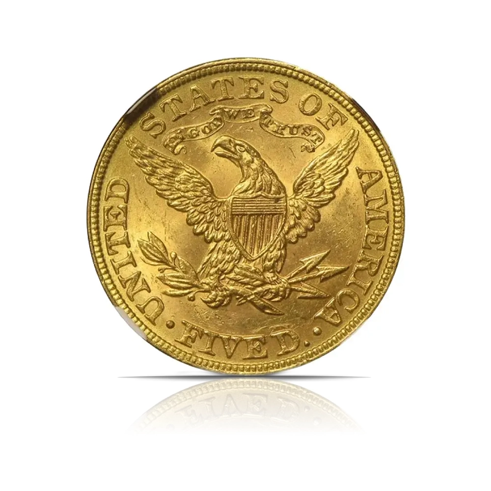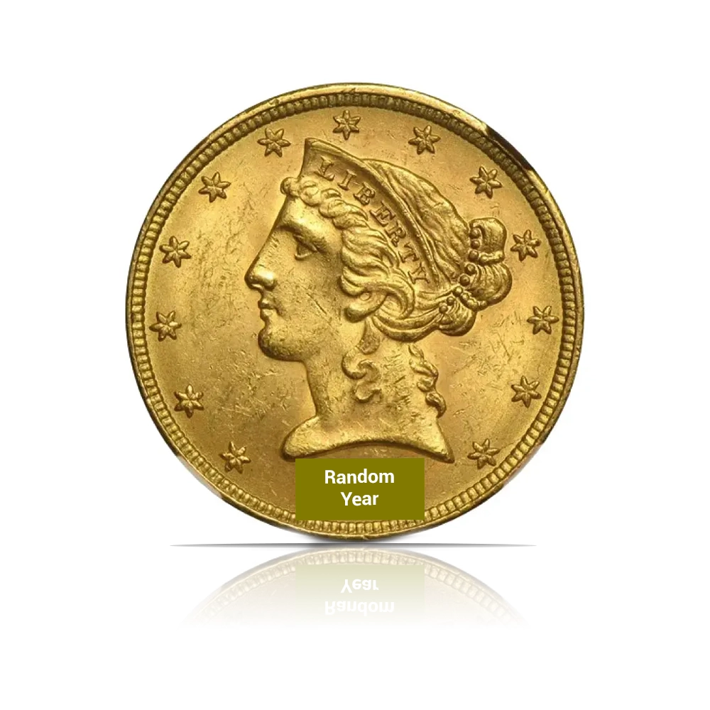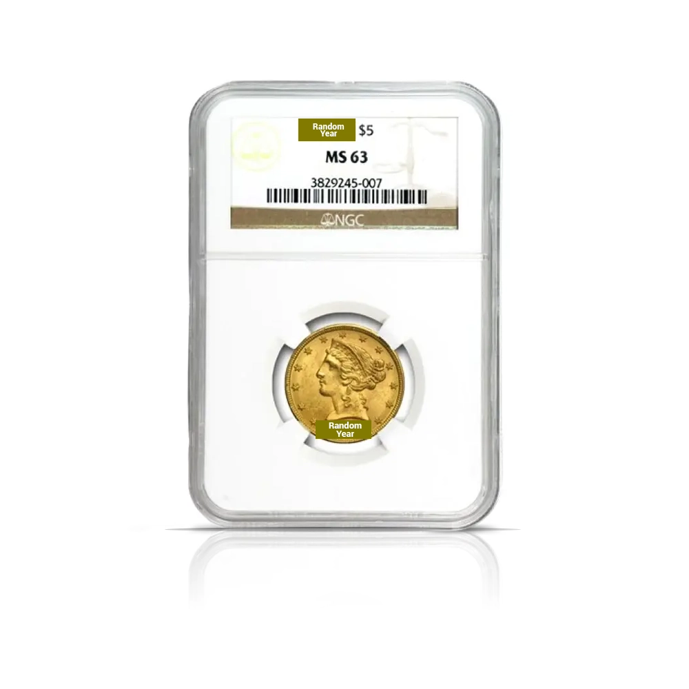 Random Year – $5 Liberty Half Eagle Gold Coin (MS63, NGC or PCGS)