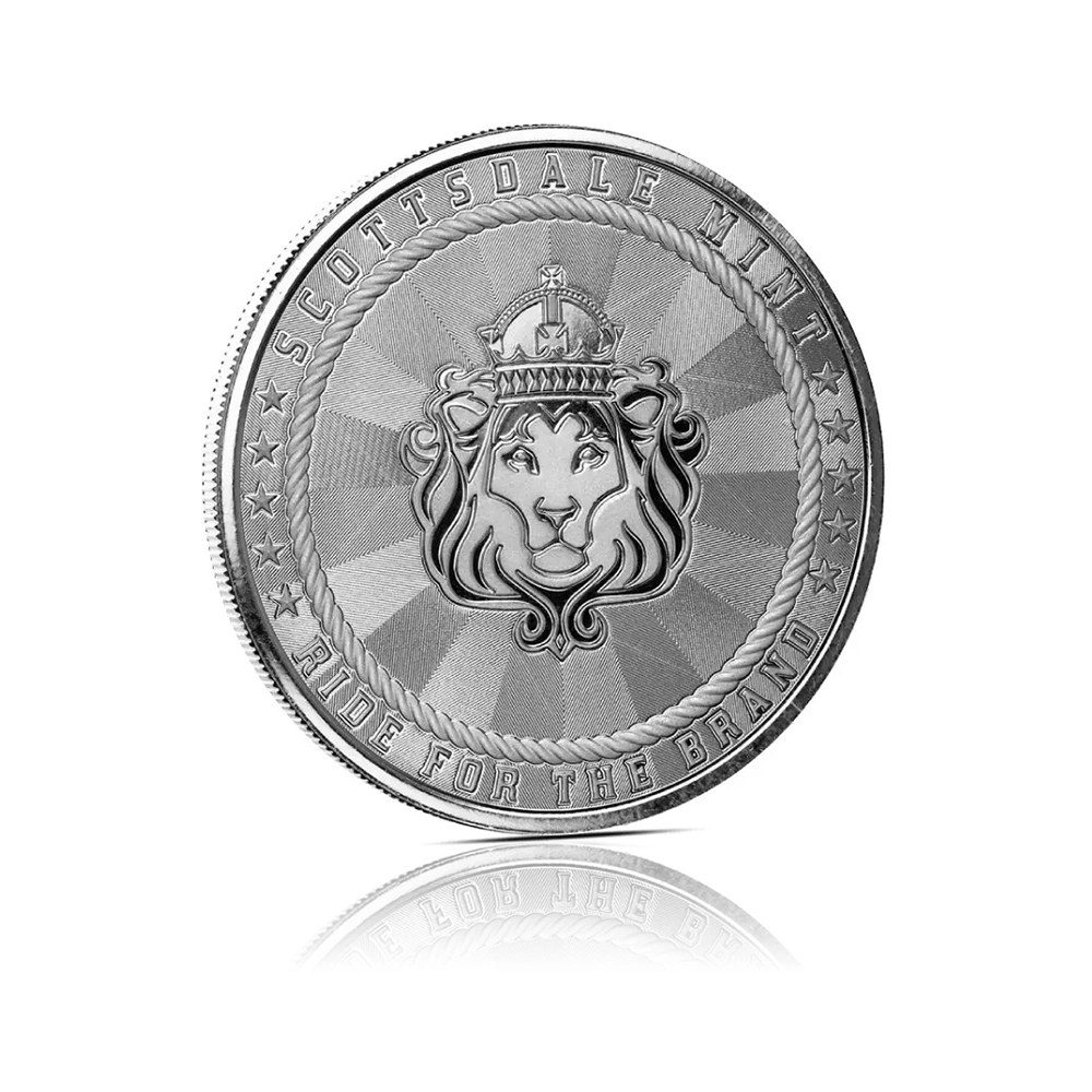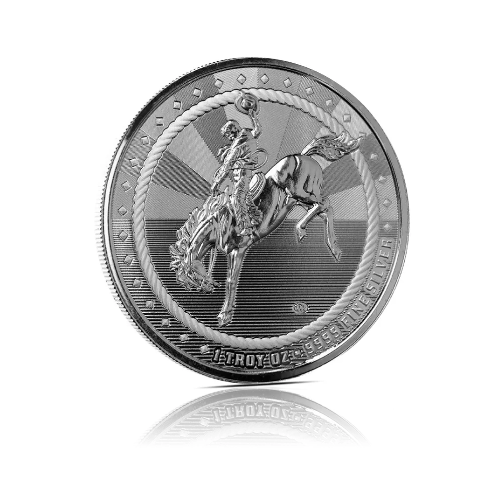 This 1 oz .9999 fine silver round by Scottsdale Mint, minted in the United States, features the classic Buffalo design along with a unique cowboy privy mark.